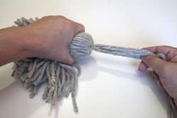 Ha continuación he atado un trozo de lana alrededor del hatillo, para formar la cabeza de la borla.