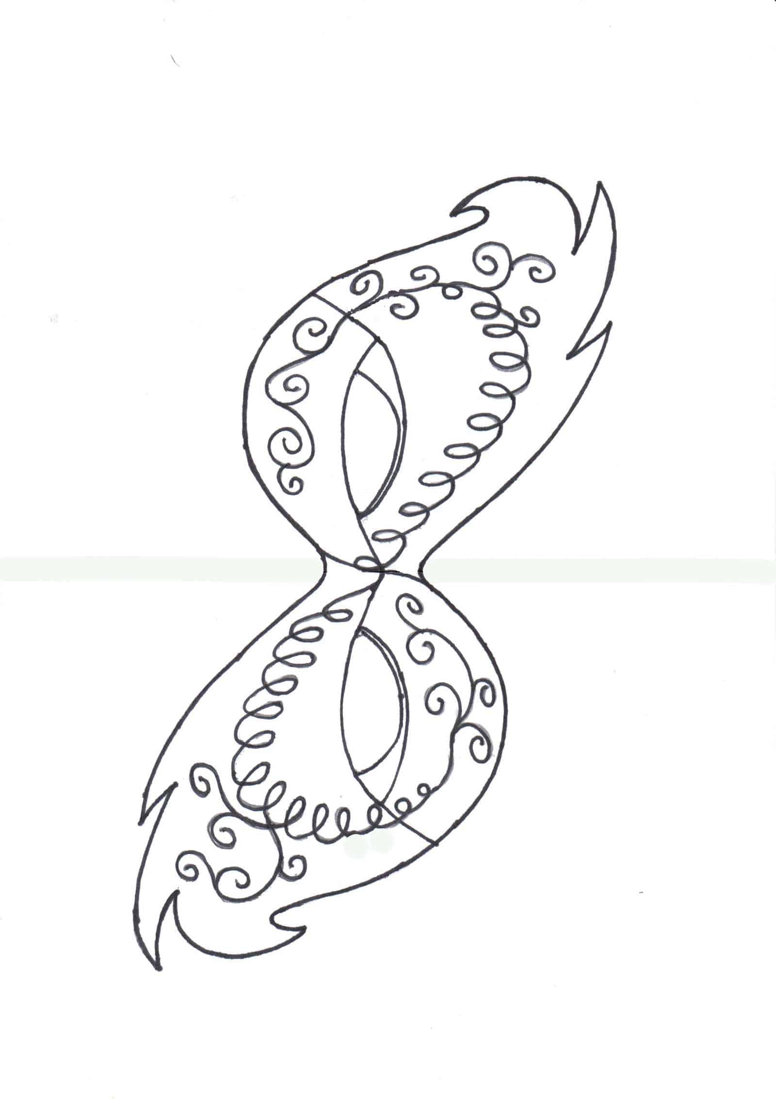 He recortado los trozos del antifaz, separando las partes que van a ir en diferente color.