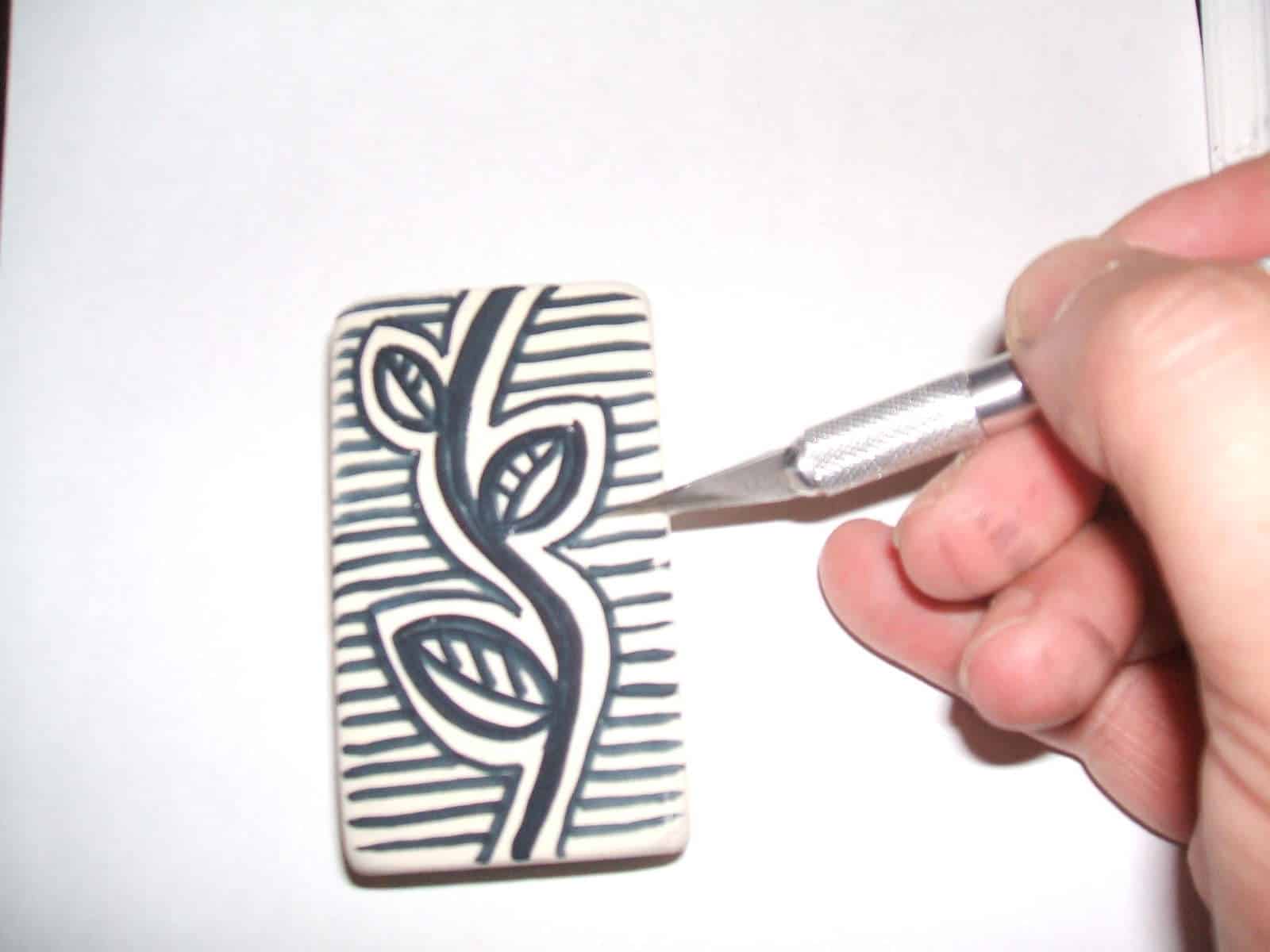 Utilizando un cúter de tipo bisturí, recorta de la goma todos los trozos en blanco, de forma que el dibujo que has hecho quede en relieve.