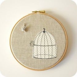 Superando la técnica clasica para bordar y utilizando aplicaciones de tela, fieltro o botones, podemos encontrar bastidores tan bonitos como estos: